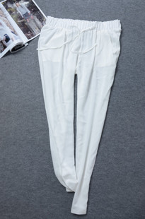 韓版2015夏裝新款女裝 外貿雪紡舒適寬松休閑哈倫褲松緊腰長褲潮 /