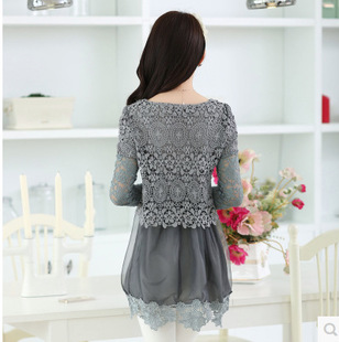 2014春秋大碼女長袖t恤女款中長款蕾絲打底衫韓版上衣服 /