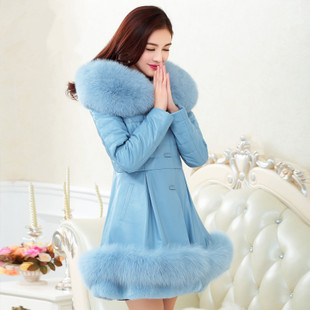71海寧真皮皮衣女2014新款真皮羽絨服女狐貍毛領(lǐng)綿羊皮中長款連帽 /