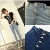 超百搭 兩色 韓版超贊4排扣高腰顯瘦牛仔小腳褲女808# /
