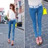 韓版蘑菇街美麗說潮2013秋裝新款女緊身小腳鉛筆蕾絲牛仔褲女5085 /