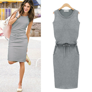 新款女裝 系帶修身連衣裙 純色吊帶背心一步裙 速賣通ebay爆款 /