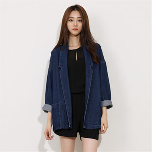 2015春裝復(fù)古BF風(fēng)寬松大碼西裝翻領(lǐng)女裝時(shí)尚長(zhǎng)款牛仔風(fēng)衣外套女 /