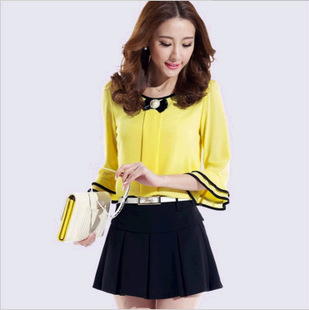 春裝新款淑女雪紡連衣裙兩件套修身顯瘦時(shí)尚上衣+短裙褲套裙 /