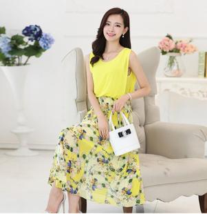 • 夏裝新款韓國(guó)休閑時(shí)尚兩件套雪紡連衣裙女裝修身顯瘦街頭長(zhǎng)裙 /