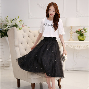 • 2015夏季新款韓版短袖字母印花T恤中長(zhǎng)款半身裙兩件套一件代發(fā) /