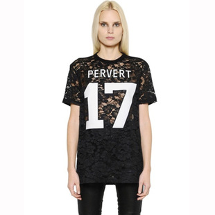 歐洲站明星鄭爽同款蕾絲繡17字母短袖T恤 快樂大本營花兒與少年 /