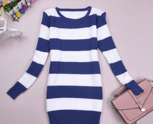 2015春裝新款女裝韓版時(shí)尚針織衫條紋中長(zhǎng)款修身毛衣羊毛衫女批發(fā) /