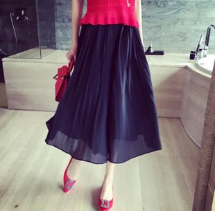小銀子2015夏裝新款設(shè)計(jì)款百褶雪紡飄逸松緊腰闊腿裙褲女式休閑褲 /