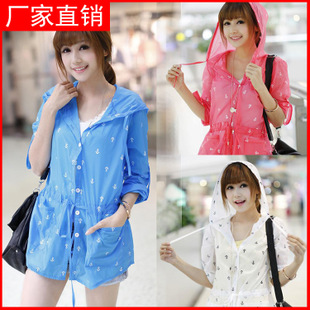 2015新款長袖連帽蕾絲薄款防曬衣下擺繡花防曬衫防紫外線防曬服女 /