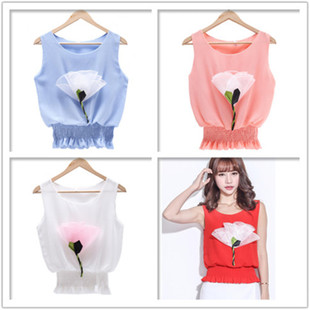 簡介: 產(chǎn)品類別 雪紡衫 貨源類別 現(xiàn)貨 風(fēng)格 甜美 圖案 花朵 主圖來源 其他來源 款式 套頭 工藝 高溫定型 面料名稱 雪紡 面料主材質(zhì)分類 合成纖維 面料主材質(zhì) 聚酯纖維(滌綸) 面料主材質(zhì)含量 91%-99% 面料次要材質(zhì)分類 棉纖維 面料次要材質(zhì) 棉花 面料次要材質(zhì)含量 10%及以下 貨號 581 產(chǎn)地 廣州 是否庫存 是 版型 修身型 衣長 普通款(50cm<衣長≤65cm) 領(lǐng)型 圓領(lǐng) 袖型 常規(guī)袖 袖長 無袖 上市年份/季節(jié) 2015夏季 面料 雪紡 成分 棉 顏色 白色,黃色,紅色,黑色,粉紅色,西瓜紅,淺綠色,寶藍(lán)色,紫羅蘭 尺碼 均碼
