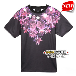 2014春夏新款潮牌 璀璨紫紅色五角星圍繞 個(gè)性圓領(lǐng)女款短袖T恤潮 /