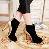 新款女鞋時尚高跟磨砂真皮短靴 黑加金拼色女靴馬丁靴 批發(fā)代理 /