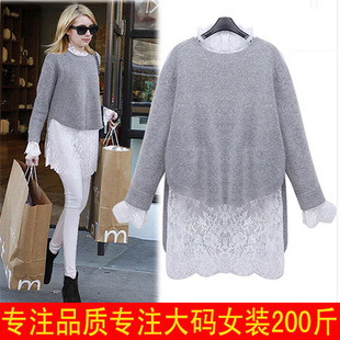 2015歐美大碼女裝加大加肥胖mm針織毛衣蕾絲連衣裙兩件套 /