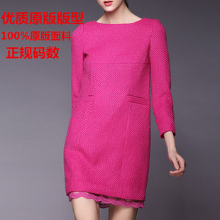 歐洲站2013秋冬新款打底顯瘦小香風(fēng)毛呢連衣裙大碼女裝 1061 /