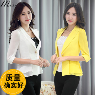 2015夏季新款七分袖 雪紡創(chuàng)意風(fēng)格女短款顯瘦休閑時尚小西裝 /