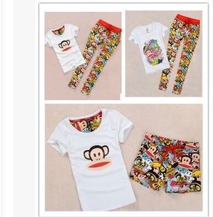 2015夏裝新款時尚大嘴猴運(yùn)動套裝 女 韓版短袖休閑套裝女款潮 /