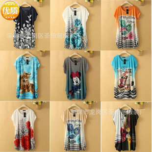 夏季新款中老年女裝 夏裝休閑大碼女裝冰絲印花T恤媽媽裝地?cái)傌浽?/span> /