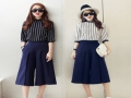 2015夏裝修身氣質(zhì)兩件套豎條紋韓版新款雪紡上衣闊腿褲時尚套裝女 /