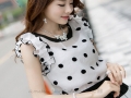 韓版波點(diǎn)雪紡衫木耳邊無袖歐根紗上衣女修身顯瘦 廠家直銷 批發(fā) /