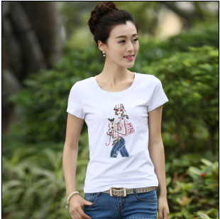 2015新款夏裝韓版女裝短袖T恤女白色大碼體恤民族風(fēng)T恤女潮 /