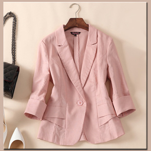 2015新款小西服女士寬松大碼休閑外套純亞麻西裝七分袖上衣特價女 /