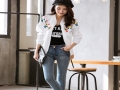 2015春夏新款街頭女裝范爺明星同款彩色小人太空棉棒球衫外套 /