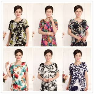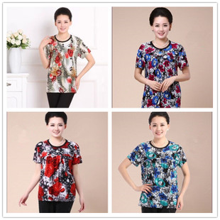 爆款中老年冰絲女裝 夏裝圓領(lǐng)媽媽裝短袖t恤地?cái)偀豳u貨源服裝批發(fā) /