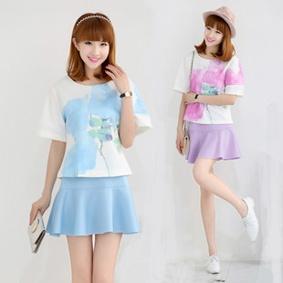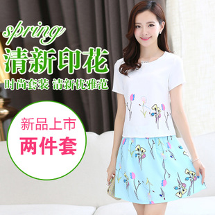 夏季新款時(shí)尚印花氣質(zhì)套裙韓版休閑顯瘦兩件套 /