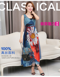 新款女高端歐美大牌桑蠶絲長(zhǎng)裙波西米亞沙灘裙真絲連衣裙 /