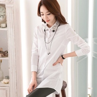 韓版2015春季新品女裝上衣中長款白襯衣 /
