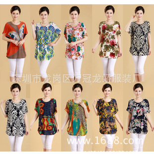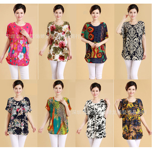 中老年女裝夏裝短袖T恤 阿里巴巴中年媽媽裝大碼冰絲庫存地攤貨 /