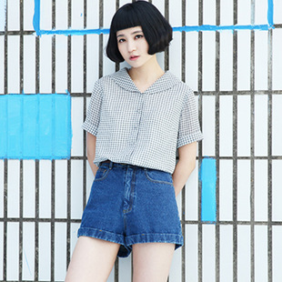 2015夏季新款復(fù)古高腰顯瘦牛仔短褲2色入 /
