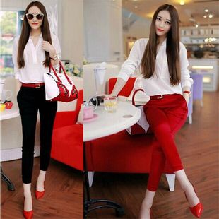 簡(jiǎn)介: 貨號(hào) GD321 6757 產(chǎn)地 廣州 主圖來(lái)源 官方圖片 貨源類別 現(xiàn)貨 是否庫(kù)存 是 風(fēng)格 休閑 圖案 純色 面料 雪紡/喬其紗 款式 褲套裝 上衣款式 雪紡衫 上衣袖長(zhǎng) 長(zhǎng)袖 褲款式 鉛筆褲 褲長(zhǎng) 九分褲 流行元素 拼接 工藝 印花/印染 上市年份/季節(jié) 2015夏季 顏色 黑色套裝優(yōu)質(zhì)版【今日送腰帶】,紅色套裝優(yōu)質(zhì)版【今日送腰帶】 尺碼 S,M,L,XL