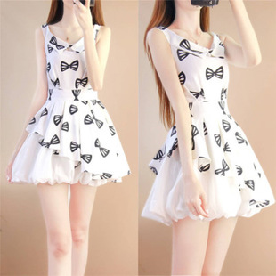 • 2015夏季新款 韓版氣質(zhì)蝴蝶結(jié)收腰百褶花苞裙雪紡連衣裙 一件代發(fā) /