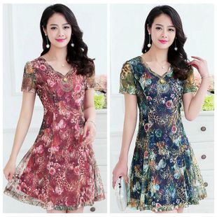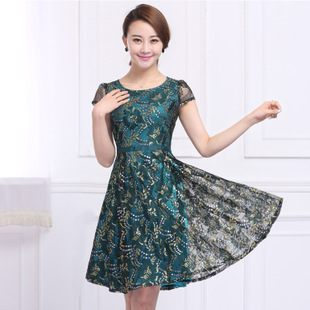 連衣裙2015夏熟女氣質(zhì)修身大碼短袖蕾絲復(fù)古連衣裙- /