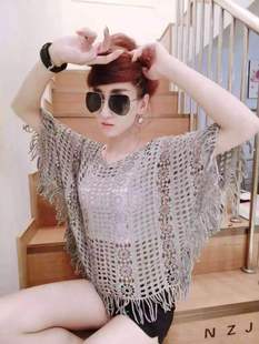 歐洲站最新時尚針織鏤空流蘇上衣+短褲套裝 /