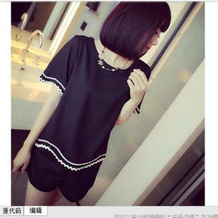 2015夏裝新款韓版胖mm大碼女裝短袖短褲寬松兩件套顯瘦T恤套裝女 /