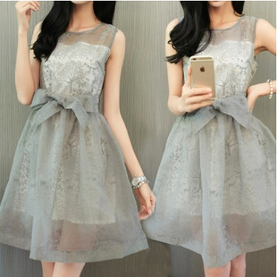 修身夏裙露肩連衣裙 歐根紗女裝套裝夏裝裙子 中長款蓬蓬裙 /