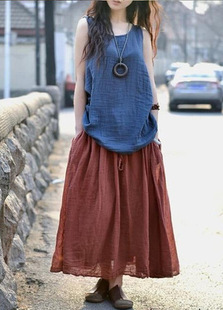 新款夏棉麻背心連衣裙套裝民族風(fēng)寬松大碼文藝兩件套長裙棉麻女裝 /