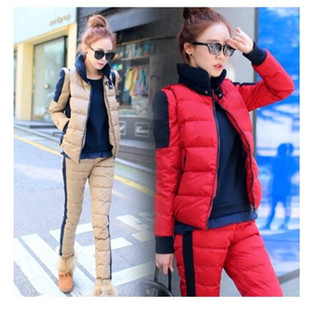 冬季新款韓版立領(lǐng)羽絨棉加厚保暖三件套女裝運(yùn)動(dòng)服套裝廠家批發(fā) /