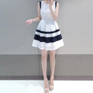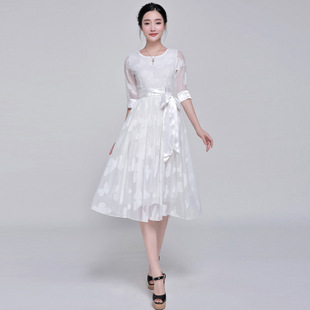 2015新款夏裝韓版雪紡歐根紗修身氣質(zhì)拼接女連衣裙 /