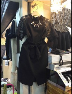 #新款雪紡連衣裙 夏蕾絲拼接收腰開叉OL氣質A字裙大碼女裝裙 /