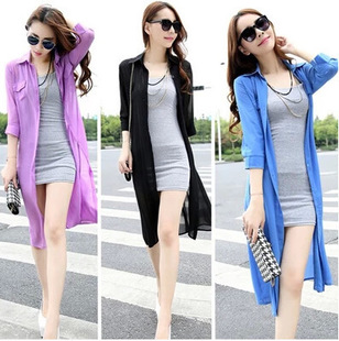 2015 新款韓國東大門代購中長款防曬衣大碼女裝小衫雪紡衫白色襯 /