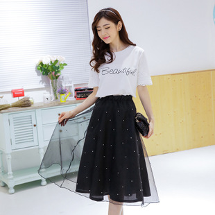 • 實拍2015夏新兩件套長裙子字母短袖T恤運動休閑套裝半身裙女 /