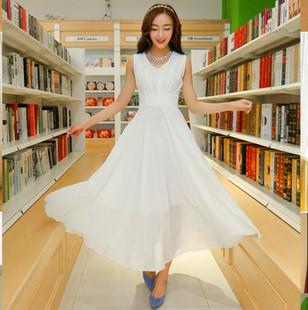 2015夏季新款大碼女裝沙灘長(zhǎng)裙修身氣質(zhì)波西米亞雪紡連衣裙 /