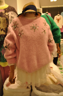 韓國東大門代購釘珠鑲鉆套頭加厚毛茸茸保暖毛衣 /