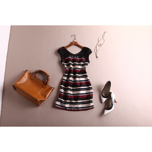 • 2015夏季新款連衣裙 圓領(lǐng)短袖條紋女裝連衣裙 品質(zhì)連衣裙廠家直銷 /