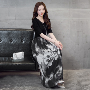 廠家直銷2015夏季新款韓版女裝短袖雪紡連衣裙百褶裙長裙一件待發(fā) /