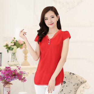 代理加盟網(wǎng)上開店一件代發(fā)2015夏季新款韓版寬松短袖雪紡衫上衣女 /